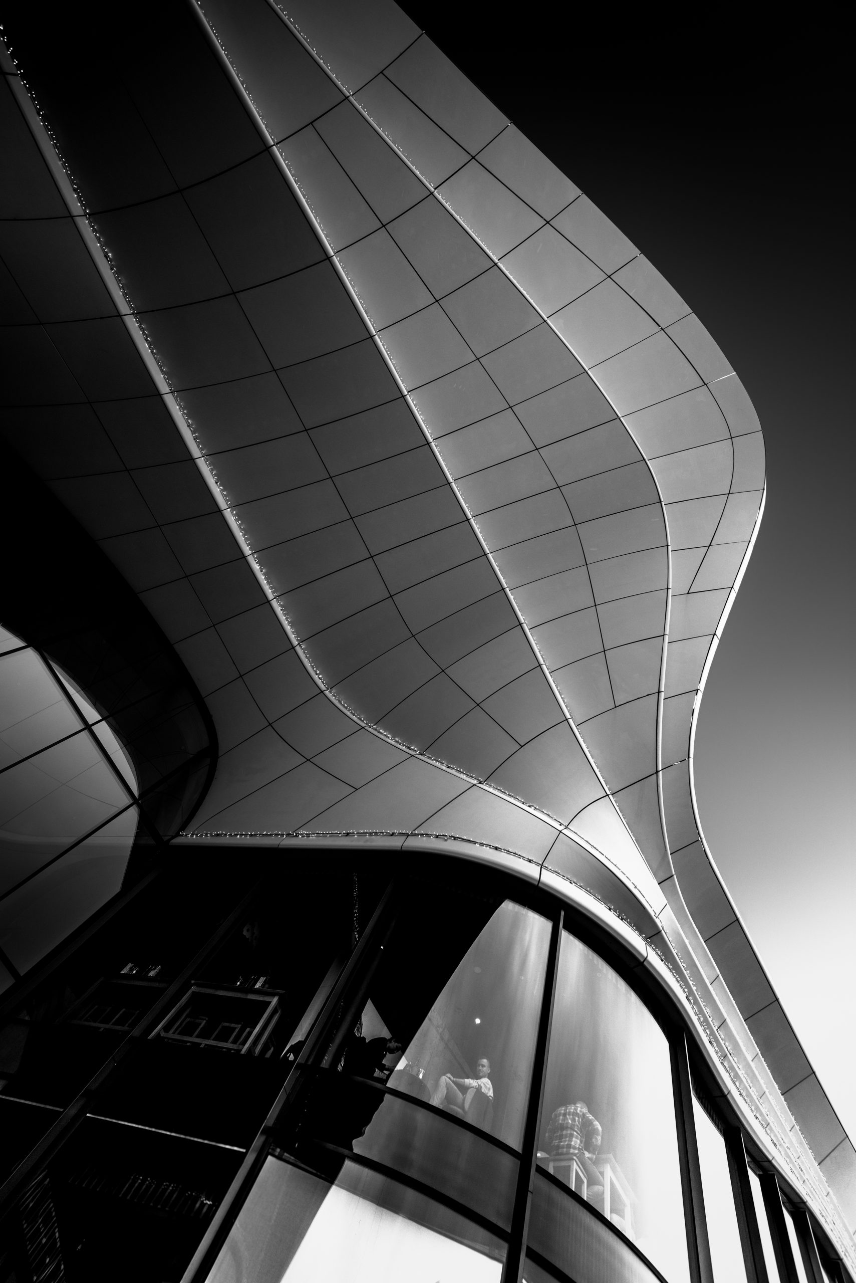 - Description: Two people share a quiet moment over coffee, seen through the curved glass of a modern building. The clean lines of the architecture frame this everyday scene, captured at the Westfield Mall in The Hague. A simple glimpse of connection in the middle of a busy space.