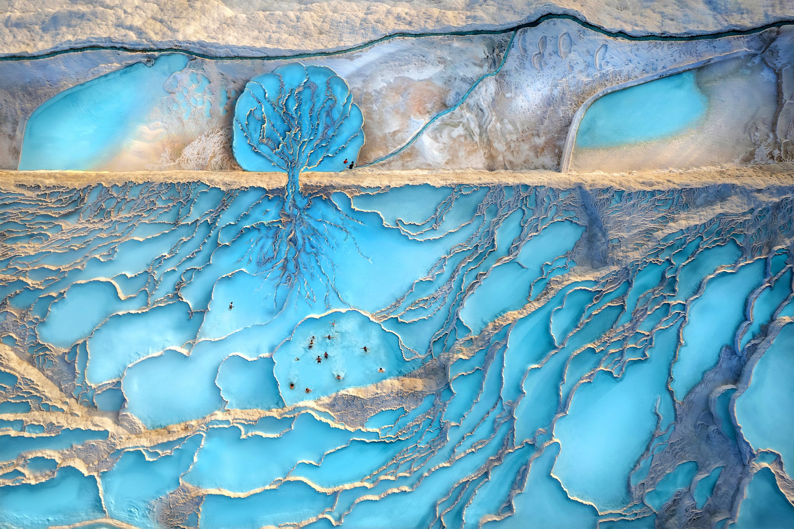 This work presents water as nature’s life force, flowing like veins across the earth. Depicted in shades of blue, it symbolizes both beauty and fragility. In this scene, where natural formations intertwine with human life, the paths shaped by water highlight nature’s power and indispensability. Water is the essence of life flowing through nature’s veins.